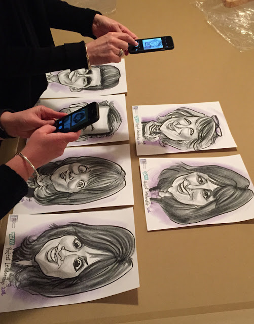 One warm summer weekday evening, my caricatures were cranked out for a company which was hosting a group of visiting foreign employees. And I do mean cranked out...the maximum number of folks I could do in two hours were expected, and so there aren't any photos other than these two...