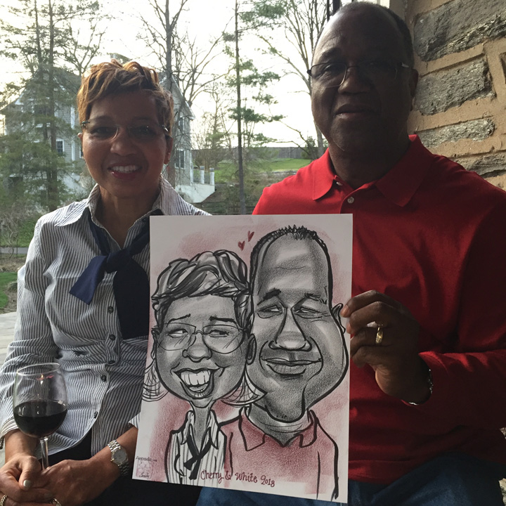 Early Saturday evening felt like summer in April...80 degrees and a nice breeze made my caricature sitters enjoy their time with me on a lovely side porch: