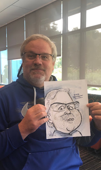 This past weekend's wedding-reception caricature-gig was another outdoor (on a PERFECT day weather-wise), at-home event...held at the childhood farmette of the groom. They literally couldn't have done much more to make it an amazing, memorable event for their guests ---bubbles at the ceremony, barbecue feast, bourbon bar, ice cream truck, a