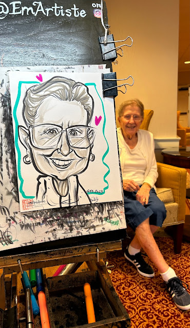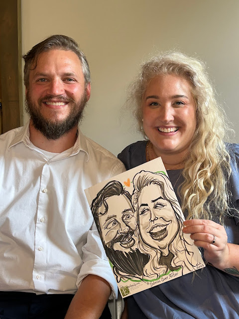 ( I drew at this couple's wedding reception in early 2021, the first wedding after the worst of the pandemic was over...and the current wedding couple decided my caricatures were the most memorable thing at that reception...hence, booking me themselves! I love when things work out that way!)
